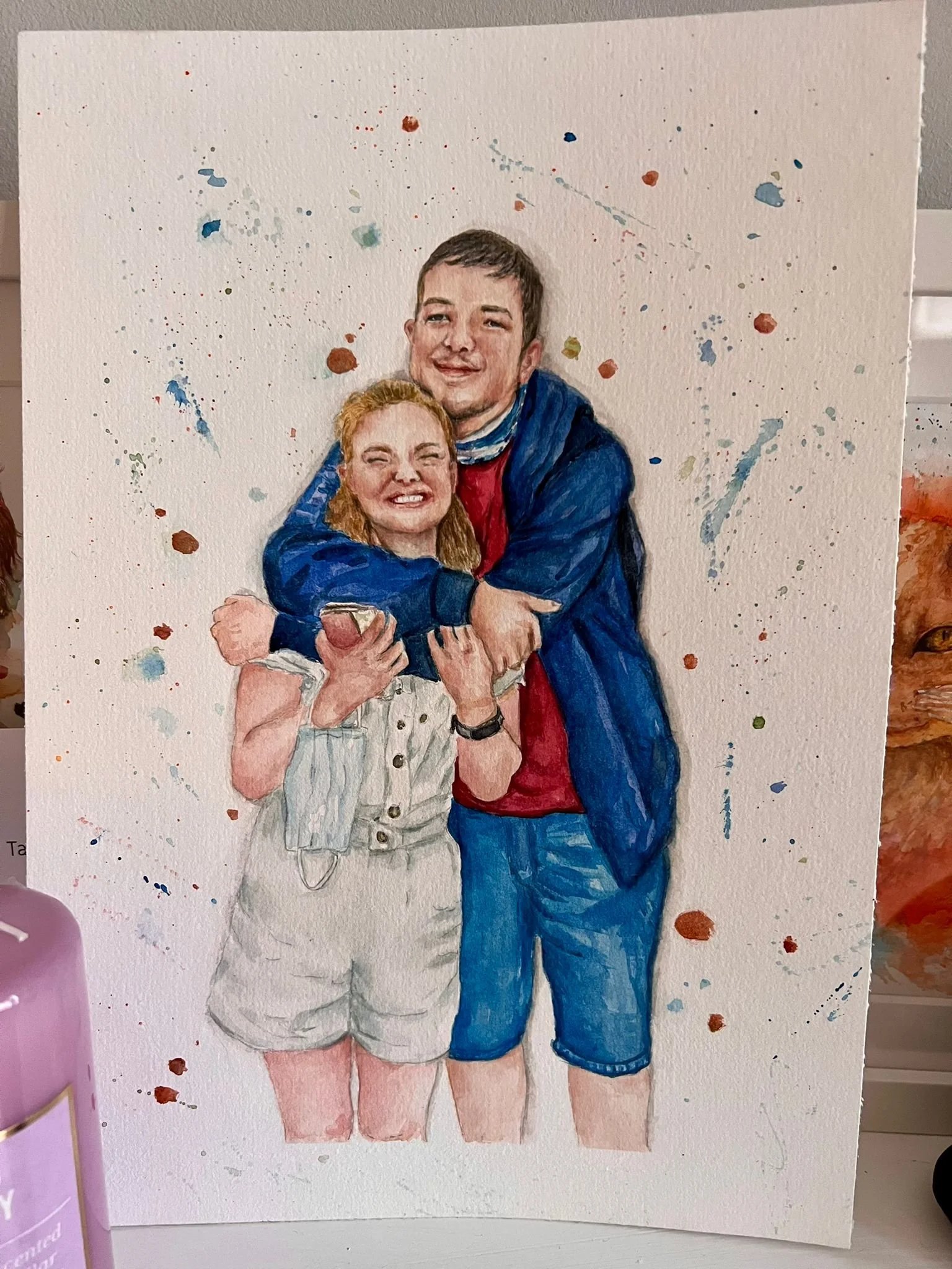 These hand painted portraits make a particularly good present for weddings, engagements or birthdays. Just with all my paintings are totally original, painted on premium watercolour paper and packaged perfectly ready for gifting.
